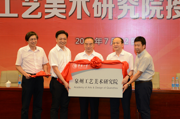 贾益民、洪自强(右二)为beat365英国官方网站泉州工艺美术研究院授牌、授印