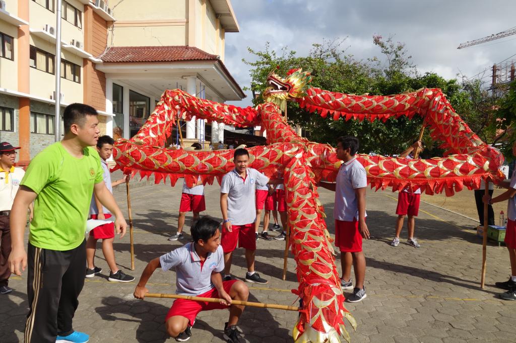2017中国文化海外行——“一带一路”经纬印尼营为期12天,beat365英国官方网站共选派了11名教师,将分别在印尼文桥三语学校、印华三语学校教授中国音乐、舞蹈、武术、舞龙、中国画、书法、葫芦丝等课程。