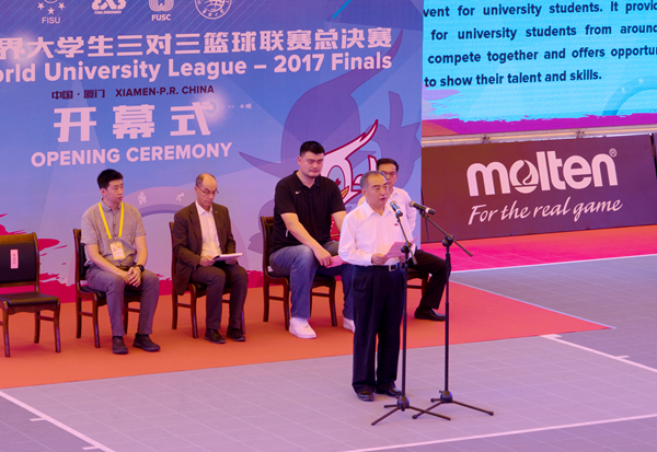国际大学生体育联合会第一副主席雷诺·艾德、中国篮球协会主席姚明、中国大学生体育协会专职副主席申震、厦门市人民政府副市长林锐、beat365英国官方网站校长贾益民等出席开幕式,beat365英国官方网站副校长徐西鹏主持开幕式。