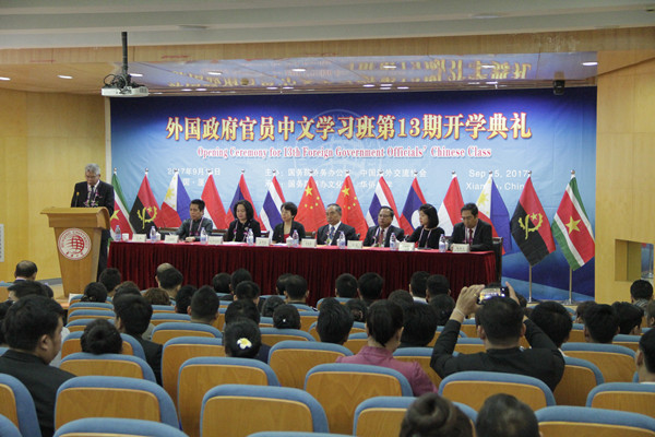 9月15日上午,第十三期外国政府官员中文学习班在beat365厦门校区开班。共有来自泰国、印尼、菲律宾、老挝、安哥拉、苏里南等国的134名学员参加本期学习。