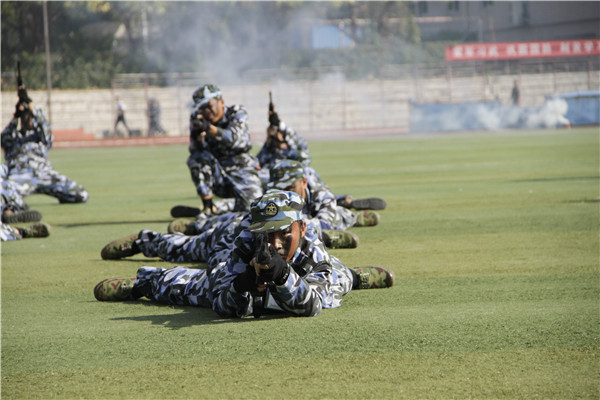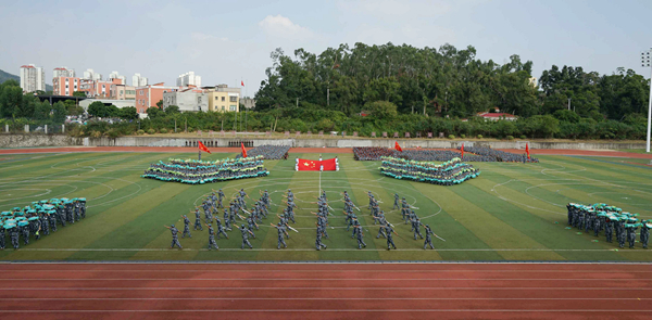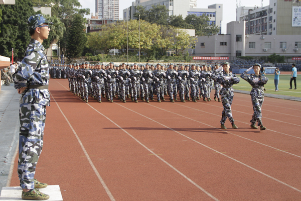 在泉州校区北区田径运动场,参训的17个新生方阵迈着整齐的步伐走过主席台,接受老师和教官的检阅。同学们还进行了旗语、军事格斗、列队训练、军体拳、匕首操、战术动作等科目的汇报表演,赢得台上台下阵阵掌声。