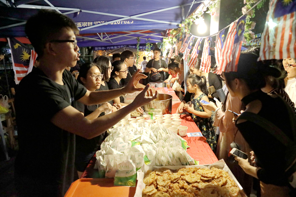 在马来西亚的美食摊点,体育学院2016级学生陈凯政在忙碌地烹饪着美食,从去年初来的懵懂到如今担任“马来煎饼”的组长,从不会制作美食到现在的热销美食制作者,他感谢美食节带来的历练与成长,感谢美食节提供的欢聚时刻,希望接下来的美食节越办越好。而在一旁帮忙的陈伟建是今年入学的新生,他表示,第一次在异国他乡制作自己国家的美食,“希望大家能通过我制作的食物更好地了解马来西亚,也希望我接下来的大学生活能像今天所做的虾饼一样多姿多彩,令人难以忘怀。”