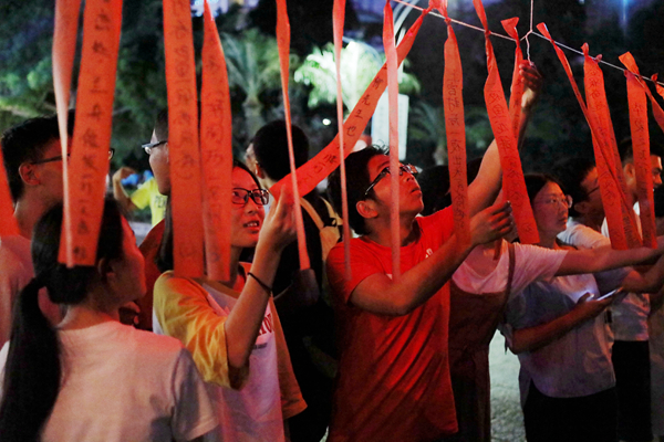 在诱人的美食摊点一侧,是摩肩接踵、笑语连连的游戏区。许多学院做了精心的准备,吹乒乓球、筷子投壶等都是每年必备的热门游戏。传统的灯谜会依然是每年游园会的固定项目。面对着灯谜,有的同学独自思索,有的团队作战、共商谜底,还有的在茫茫题海中寻找自己所知的答案……一位化工学院2010级校友回到母校参加久违的游园活动,她高兴地说:“今年新增了表演项目,娱乐性大大提升了,整体氛围很不错。”