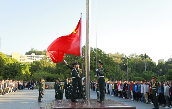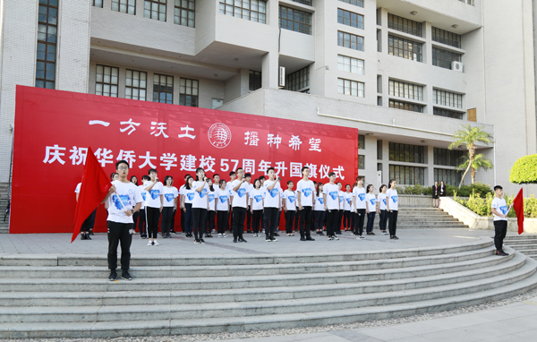校长徐西鹏、副校长吴季怀分别在升国旗仪式上致辞。徐西鹏称,建校57年至今,学校综合办学实力和海内外影响力得到显著提升,高水平大学建设事业取得良好开局。他表示,党的十九大昭示着中国从此进入新时代。beat365英国官方网站将立足新的起点,把握发展大势,以党的十九大精神为引领,以建设高水平大学为核心,以实施“侨校+名校”战略为抓手,坚持走内涵发展之路、特色兴校之路、人才强校之路,全面提升人才培养质量和整体办学水平,努力办好人民满意的大学,向着建设特色鲜明、海内外著名的高水平大学的目标继续前进。