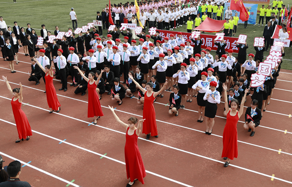 文体表演环节,来自泉州校区各学院的400余名同学在操场中央表演排舞节目《让世界听我的》,动感的音乐点燃了赛场的气氛,整齐划一的动作和饱满的精神状态引来掌声阵阵。