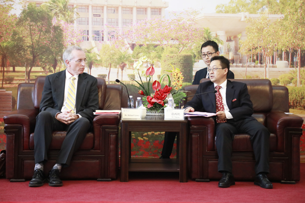 徐西鹏与美国威斯康星大学欧克莱尔分校副校长Michael Carny交谈