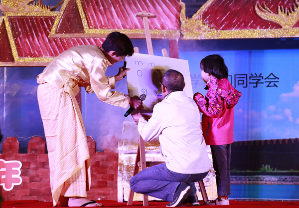 “95”是缅甸的国际区号,开幕式晚会上,缅甸的同学们带领观众“登上”这一“95路公交车”,领略缅甸八大民族的文化与风情。一首《MinGalar Bar(你好)》,唱出缅甸人民对客人的欢迎。随后,缅甸八大民族一一着盛装出场,向观众展示来自洪沙瓦底(缅甸旧称)的瑰丽色彩。掸族舞《少邯哩》、阿迎戏《舞颂大自然》、《克钦儿女景颇魂》,一出出精彩的舞蹈表演,传递着缅甸同学的喜悦与兴奋,引得现场欢呼阵阵。学缅甸语、写缅甸字,还有魔术表演等互动游戏环节,也得到现场观众的积极响应。压轴的一首《Pyay Taite Lite》,将现场气氛推向高潮,同学伴着激情飞扬的歌声在细雨中挥舞闪光灯,齐声合唱……