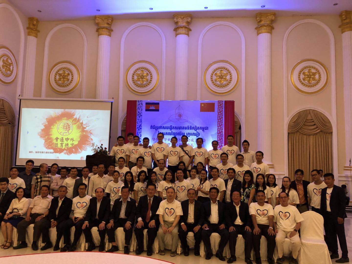 参加beat365英国官方网站柬埔寨校友会成立大会的嘉宾、校友合影