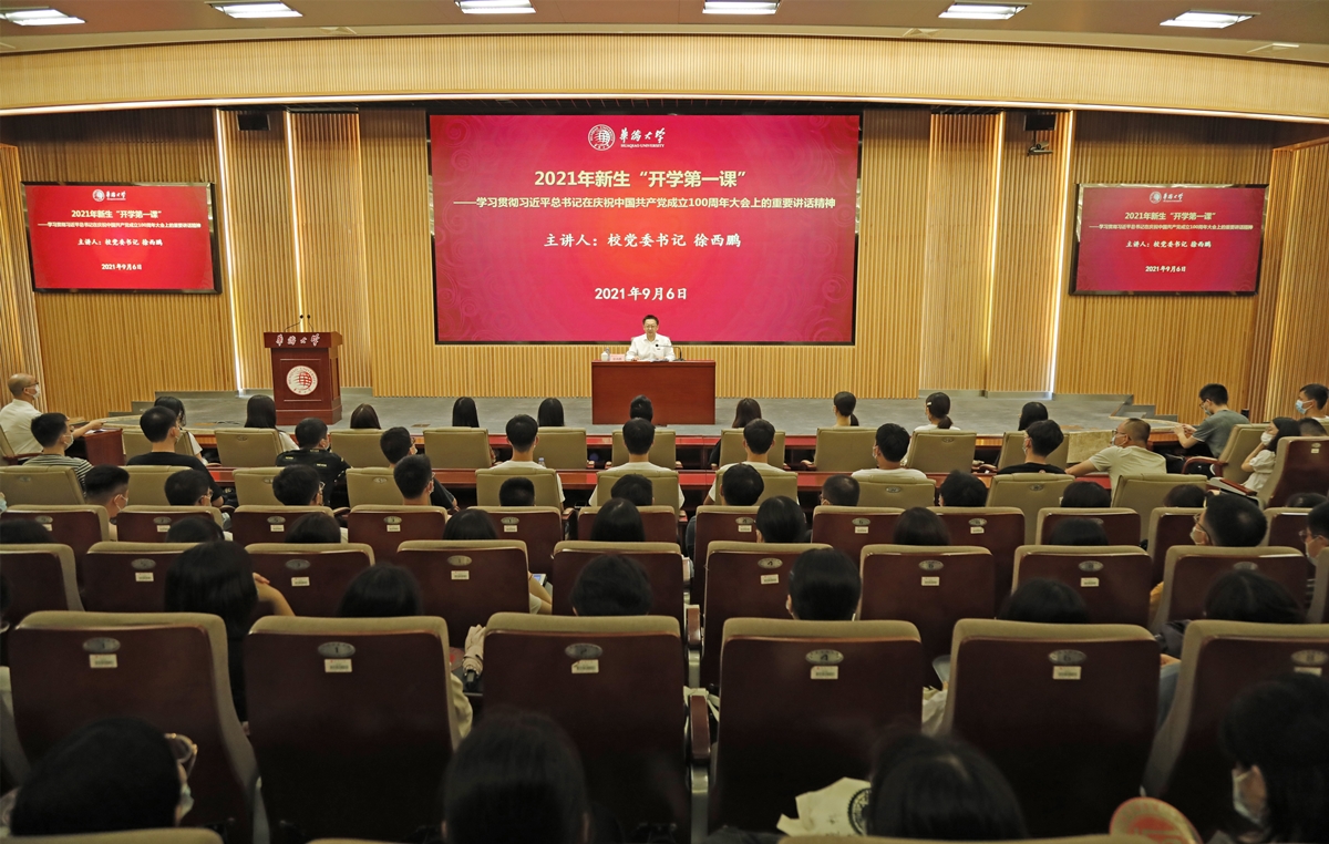 9月6日下午,校党委书记徐西鹏以“传播中华文化 促进文明交流互鉴——学习贯彻习近平总书记在庆祝中国共产党成立100周年大会上的重要讲话精神”为题,为2021级新生上“开学第一课”。