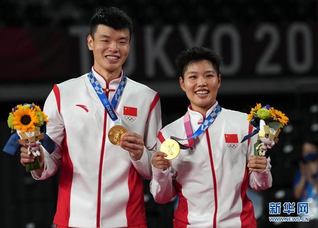 校友黄东萍(右)在东京奥运会上夺得金牌