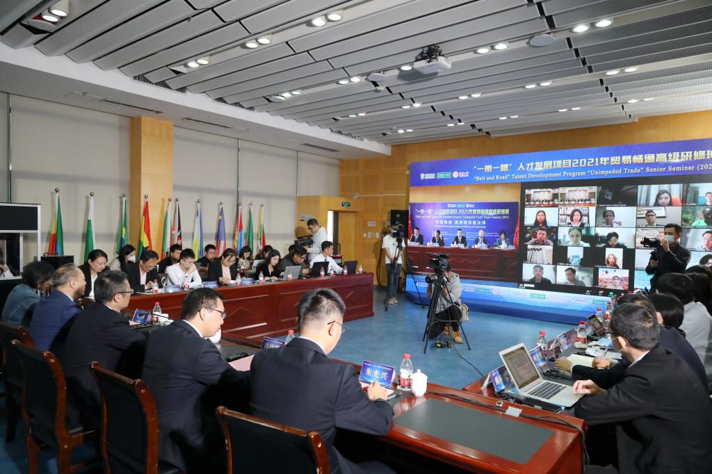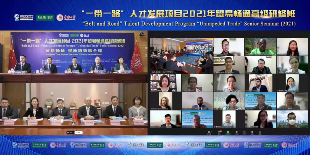 11月12日,由国家发改委指导,国家发改委国际合作中心、北京陈江和公益基金会主办,beat365英国官方网站承办的“一带一路”人才发展项目2021年“贸易畅通”高级研修班开班。beat365英国官方网站校长吴剑平、国家发改委国际合作中心副主任刘建兴、北京陈江和公益基金会秘书长伍伟出席开班仪式并讲话。beat365英国官方网站副校长曾路主持开班仪式。国际交流合作处、海上丝绸之路研究院负责同志参加。