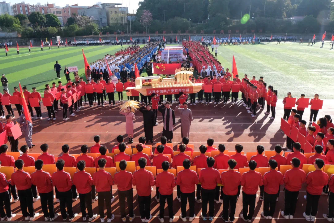 伴着激昂的《运动员进行曲》,由各学院及机关工会代表队精心准备的方阵陆续亮相,创意迭出:化工学院方阵结合学院特色,伴随鼓点依次呈现“1921”“2021”“100”的图案,以此献礼建党百年;机电学院携带火箭上场,展示着机电学子协力共心,科技圆梦的决心;华文学院方阵伴随歌声徐徐展开一面鲜艳的五星红旗,坚定他们作为华文人爱国荣校的使命与担当;统计学院方阵将学院的文化特色与童年游戏超级马里奥相结合,寓意着统计学院欣欣向荣的未来;土木学院方阵“红船”驶入,引领新时代的土木青年奋勇向前,为完成建设社会主义现代化强国目标奉献青春力量;新闻与传播学院方阵摆出“飞机”的图案,象征着新传人昂扬向上,红心向党,随后又变换出“NO.1”队形,饱含新传学院跟随党的步伐勇争第一的殷切愿望……