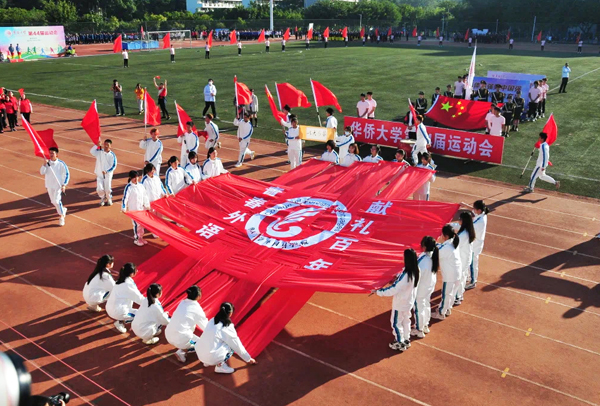 伴随着激昂的《运动员进行曲》,泉州校区各学院及机关、后勤、产业工会代表队的15个方阵陆续登场,他们步伐整齐划一,口号掷地有声,尽显卓越风貌。师生们身着各色服饰,手举国旗,秉学院特色、展绚丽风采,展现华大人蓬勃向上的精神风貌。