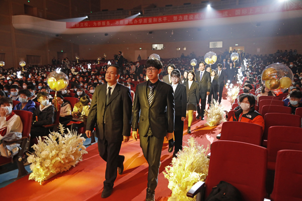 校领导徐西鹏、吴剑平、王秀勇、王丽霞,各相关职能部门、各学院主要负责人出席颁奖典礼。百余名优秀学子代表依次上台接受颁奖和祝福。