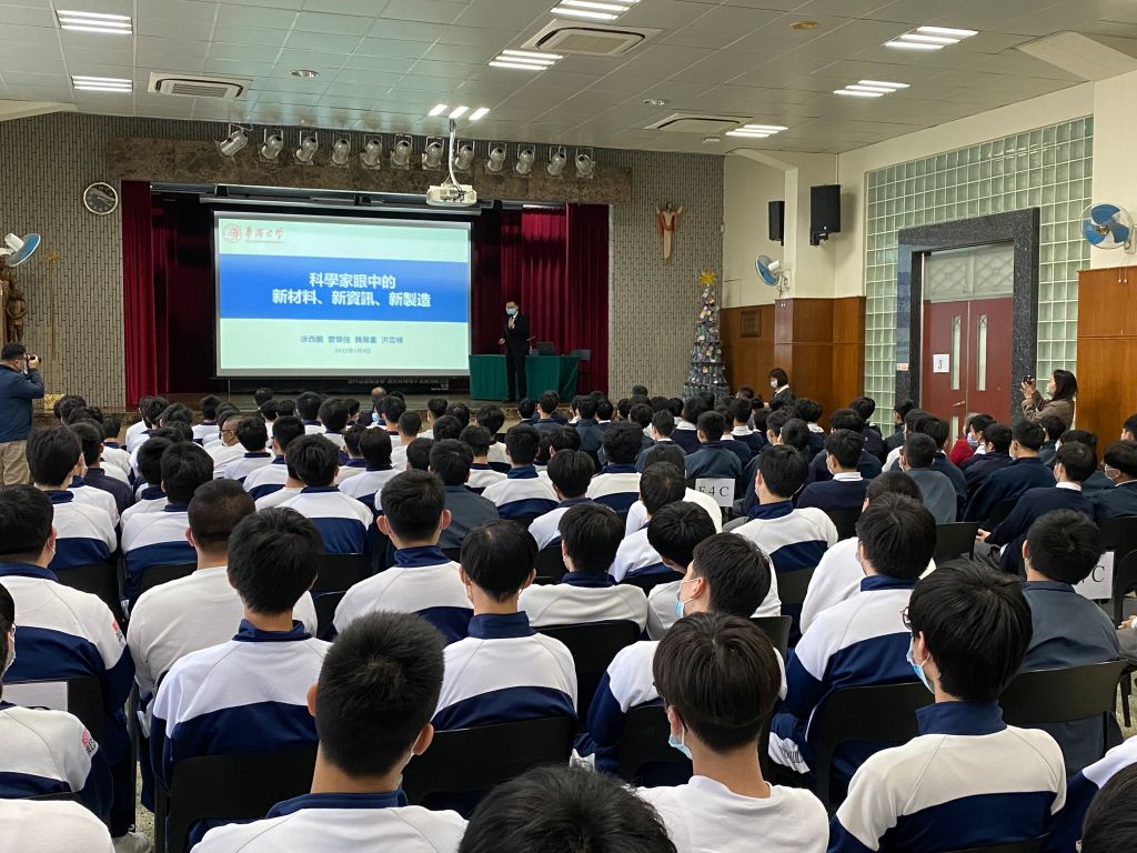 1月4日和6日,beat365制造工程研究院院长徐西鹏教授在访问澳门期间,率beat365工学院院长曾焕强教授、发光材料与信息显示研究院常务副院长魏展画教授两位专家,在澳门中联办教育与青年工作部教育处处长岑嘉仪陪同下,先后赴澳门慈幼中学和粤华中学,以“科学家眼中的新材料、新资讯、新制造”为题开展科技讲座。澳门慈幼中学、粤华中学450余名师生参加此次宣讲。