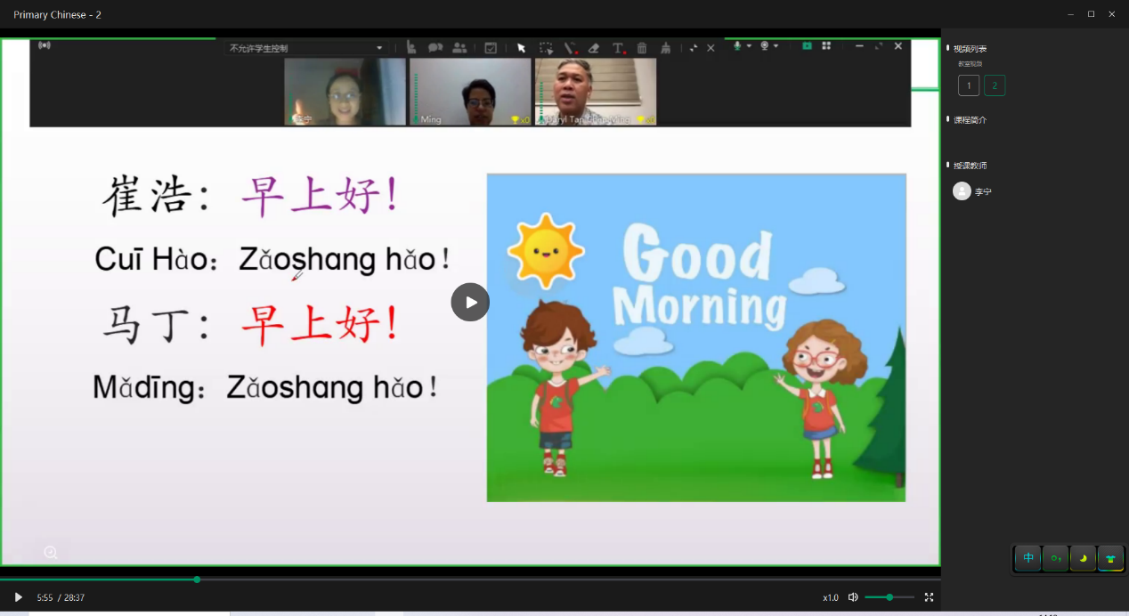 华文学院立即选派优秀师资成立授课团队并制定专门教学方案,为陈铭先生提供中文学习、历史文化、商务对话等全方位学习辅导。目前已完成为期3个月28个课时的线上辅导,包括问候、日期、购物、问路、以及节日文化等多个主题的内容。