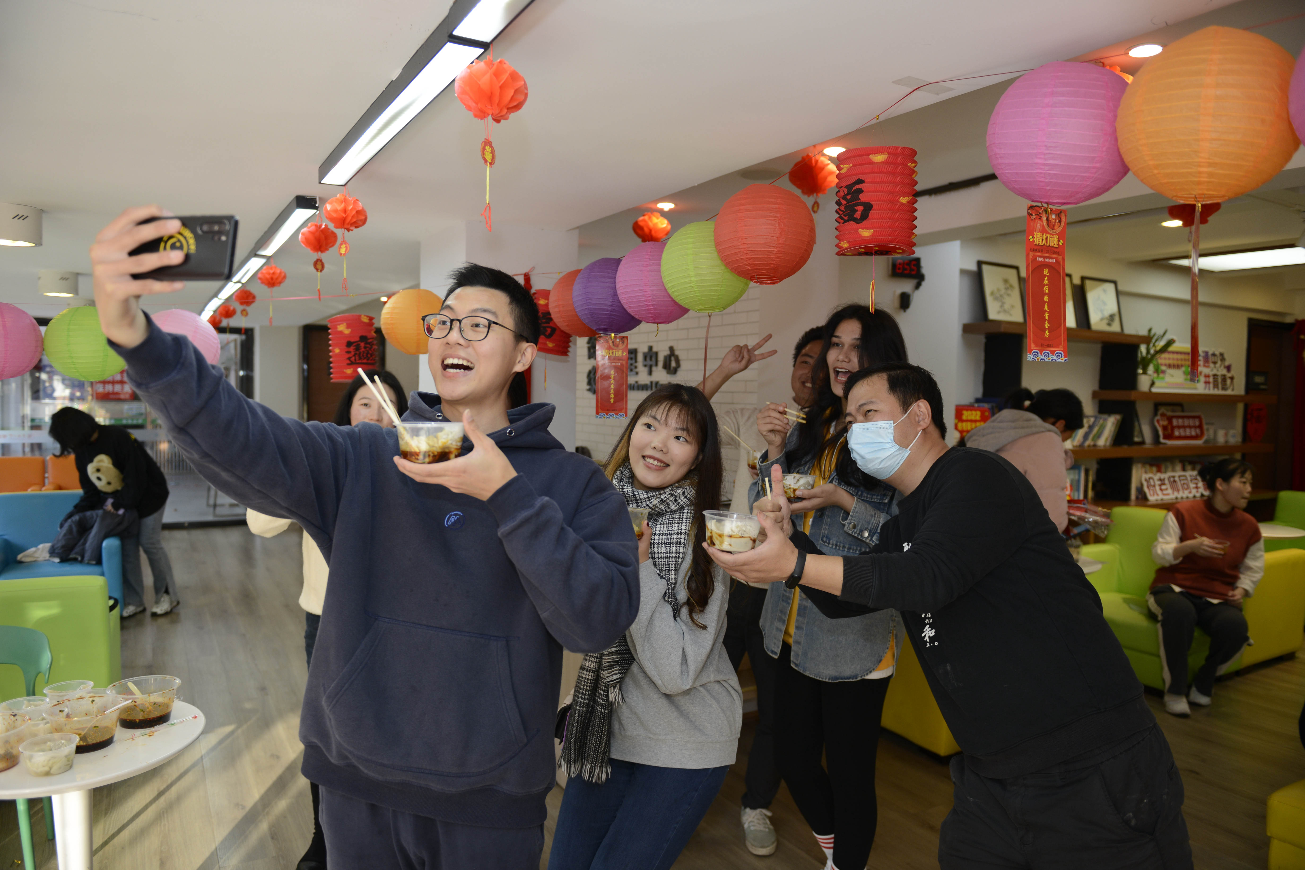 当日下午,副校长王秀勇来到活动现场慰问留校同学,与大家一同迎接新春佳节的到来。包饺子、蒸年糕、猜灯谜、剪窗花、写春联……期间,同学们参与各项活动,欢声笑语不断,不仅感受着学校对留校学生的浓浓暖意,也体验到了中华文化、传统民俗的独特魅力。