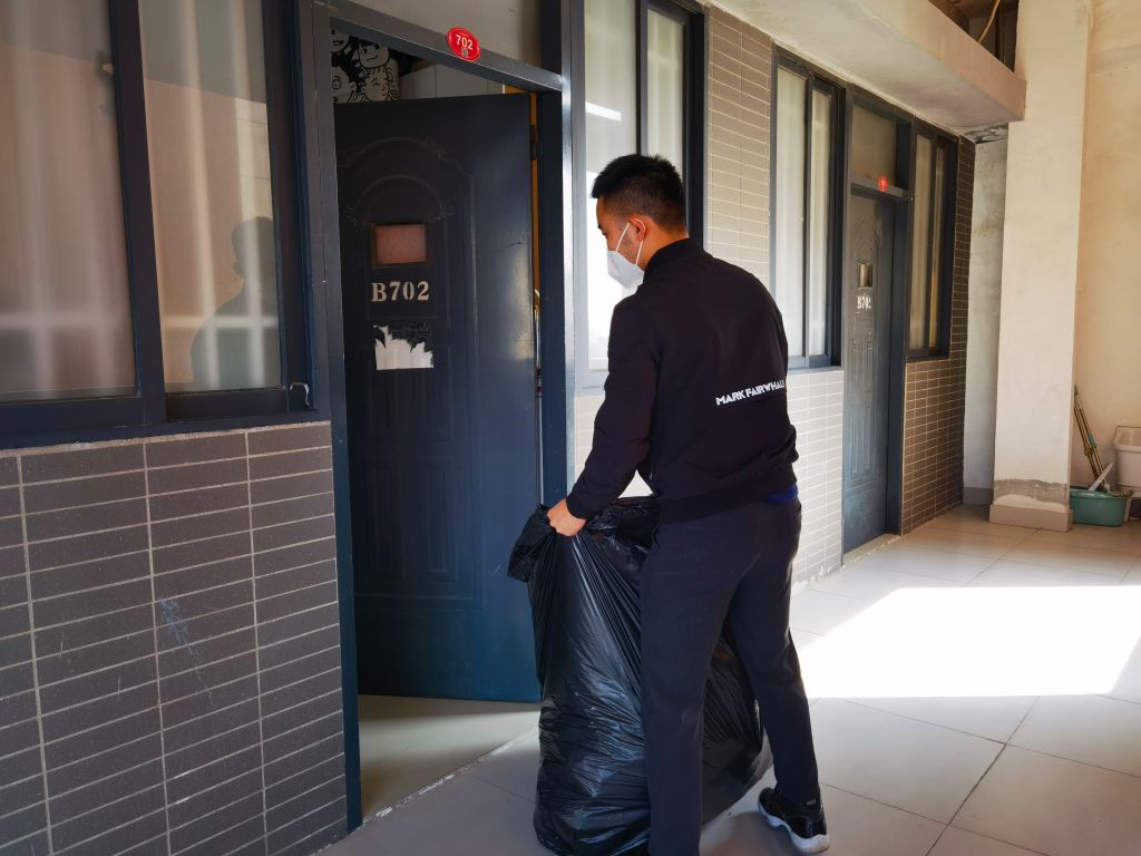 16日起,根据属地防控最新要求,beat365英国官方网站进一步加强校园疫情防控。凌晨5点,孙丛强接到通知,立即前往学院开会。7点半左右他回到楼栋,开始走访各个学生宿舍,向同学们告知和解释最新的防控要求,并了解他们的困难与需求。“走访宿舍时,得知同学有扔垃圾的需求,我们就立即行动,找楼管要了垃圾袋。”他说。