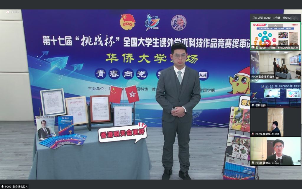 据悉,本届“挑战杯”大学生课外学术科技作品竞赛国赛,自2020年底启动至今历时一年半时间,学校积极克服赛事延期调整、参赛队员居家隔离、学校封闭管理、设备调试困难等疫情影响,顺利组织完成线上终审决赛路演答辩。校团委在项目选题和研究方向上重点凸显侨校特色,突出理工科专业整合优势,努力打造“制、课、赛、项”四位一体的科创育人模式。依托“侨青讲堂”品牌活动,邀请校外评审专家对参赛作品进行了线上线下打磨和辅导,组织开展了面向指导老师、组织工作辅导员以及参赛学生的校级讲座5场、沙龙论坛4场、选拔评审会场、工作推进会5场,模拟路演8场,反复打磨提升项目质量,培养提升学生创新能力。