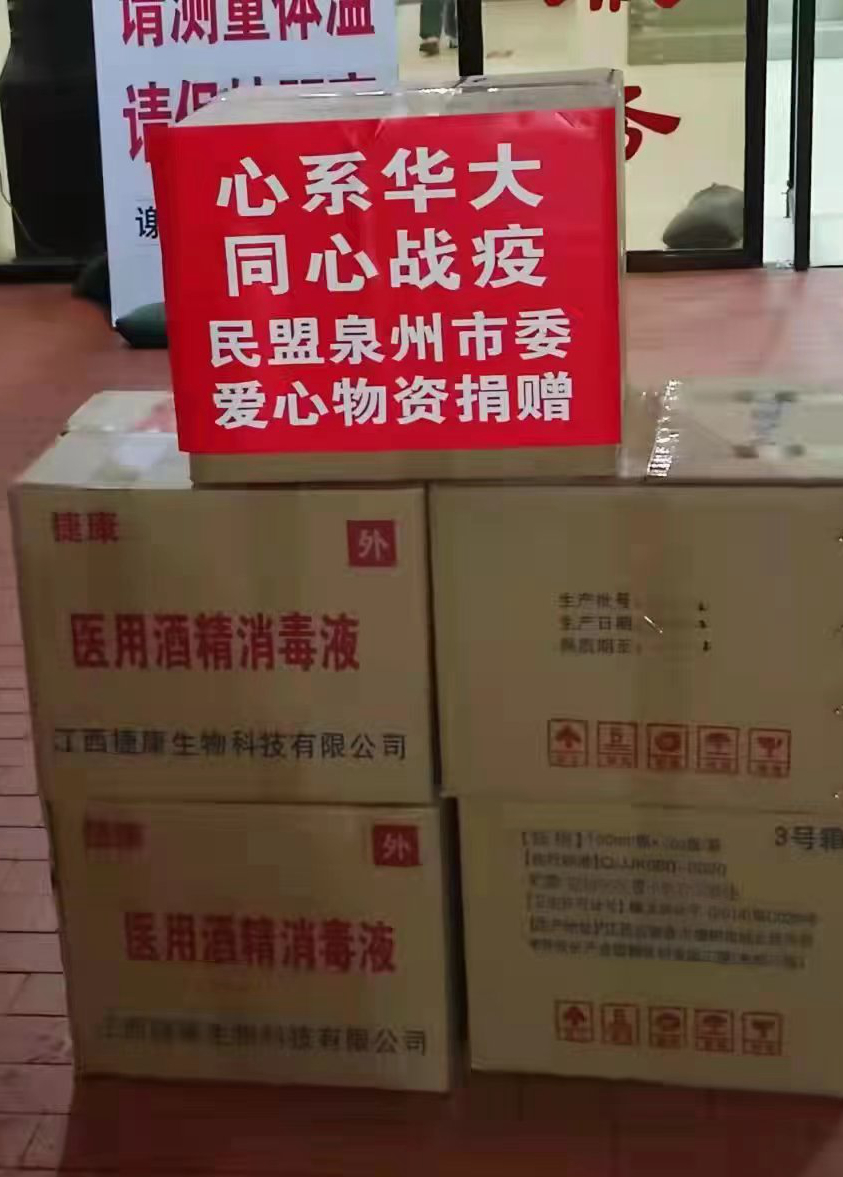 各党派团体也相继想方设法筹措物资和资金,助力校园和地方抗疫。民革泉州市委会副主委、华大总支部主委孙永青个人主动捐款1000元,并向所在的建筑设计院发起抗疫爱心捐款倡议,共募集资金17830元,用于采购红外体温计等紧缺医用物资捐给学校。民盟泉州市委会主委、华大总支部主委赵昕东在个人捐款的同时,协调民盟泉州市委会向校医院捐赠一万元物资。在疫情暴发之初的3月16日,农工党华大总支部就发出捐款倡议书,得到党员们的积极响应,共捐款2550元,于次日转到泉州市红十字会。此外,致公党华大总支部主委严捍东、党员阴长霖,九三学社华大委员会主委白晓东,台盟华大支部主委蒋楠等也都带头自发进行捐款,奉献爱心。