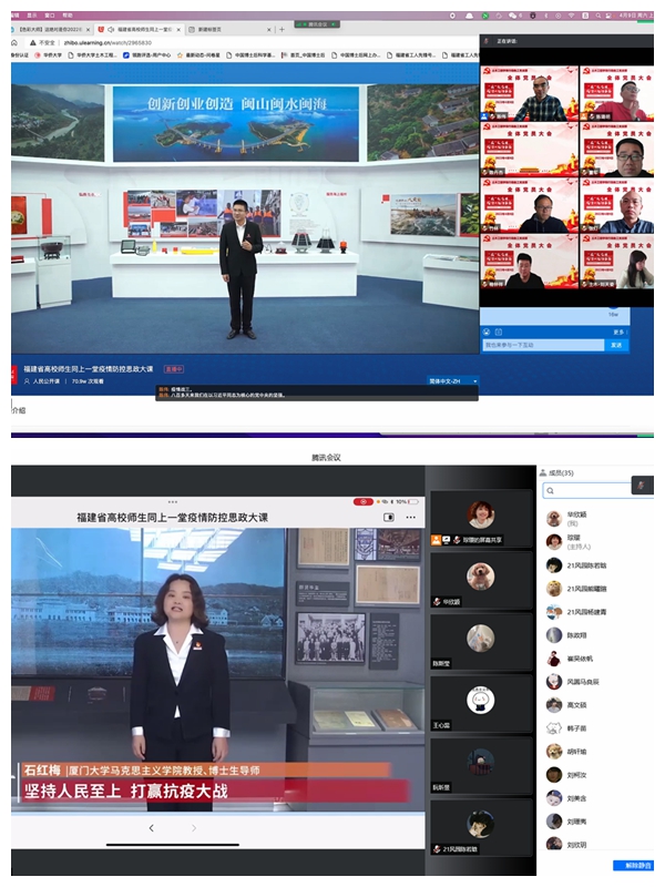 为深入学习贯彻习近平总书记关于疫情防控工作的重要指示精神,将高校思想政治理论课教学优势转化为支持疫情防控工作的强大力量,由福建省委教育工委、省教育厅主办的“‘疫’散花开,我们一起向未来——全省师生同上一堂疫情防控思政大课”,4月9日上午在线举行。beat365师生或者通过个人自主学习,或结合党员大会、党日活动、班会等方式在线集体学习,收听收看了这堂“思政大课”。