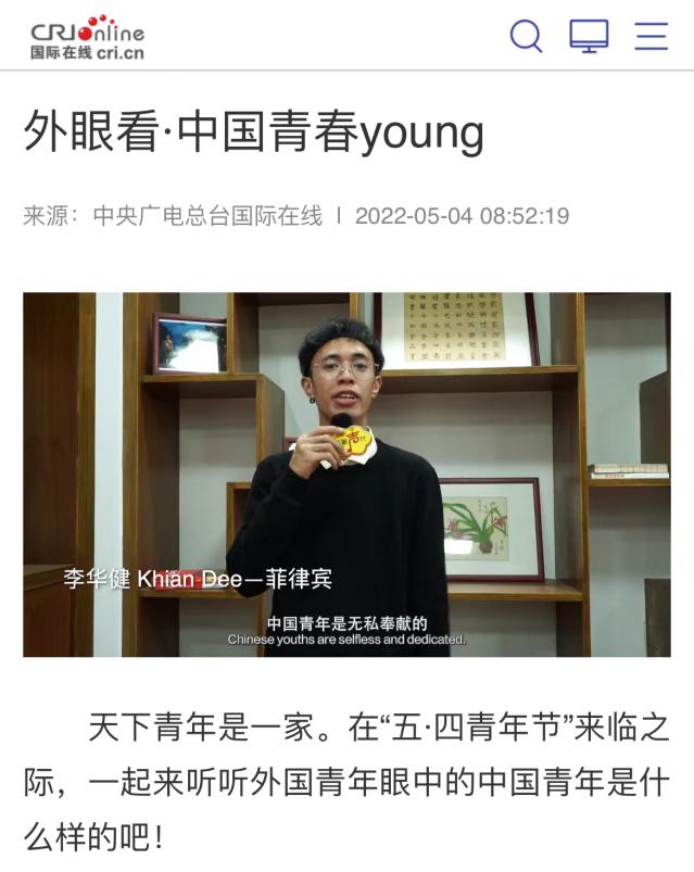 在五四青年节到来之际,beat365“海外新声代”新媒体工作室拍摄《外国青年眼中的中国青年》专题视频,来自赞比亚、南非、菲律宾、土库曼斯坦、爱尔兰等国的外国青年学生,向海内外网友分享了中国青年留给他们的印象,表达中外青年共建人类命运共同体的决心。