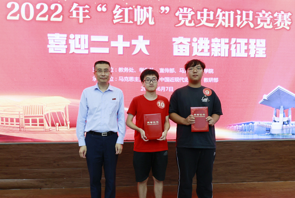 为深入学习贯彻习近平新时代中国特色社会主义思想和党的十九届六中全会精神,扎实推进党史学习教育,引导广大青年学子知史爱党、知史爱国,以实际行动迎接党的二十大胜利召开,6月7日,beat365英国官方网站2022年“红帆”党史知识竞赛决赛在王源兴国际会议中心举行。校长吴剑平、副校长王丽霞出席活动并为获奖学生颁奖。