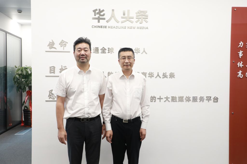 在华人头条传媒有限公司,吴剑平与公司创始人黄其旺董事长座谈,详细了解公司发展情况。双方就共同讲好中国故事、传播中华文化、促进文明交流互鉴、连通海内外华侨华人等进行了深入交流。