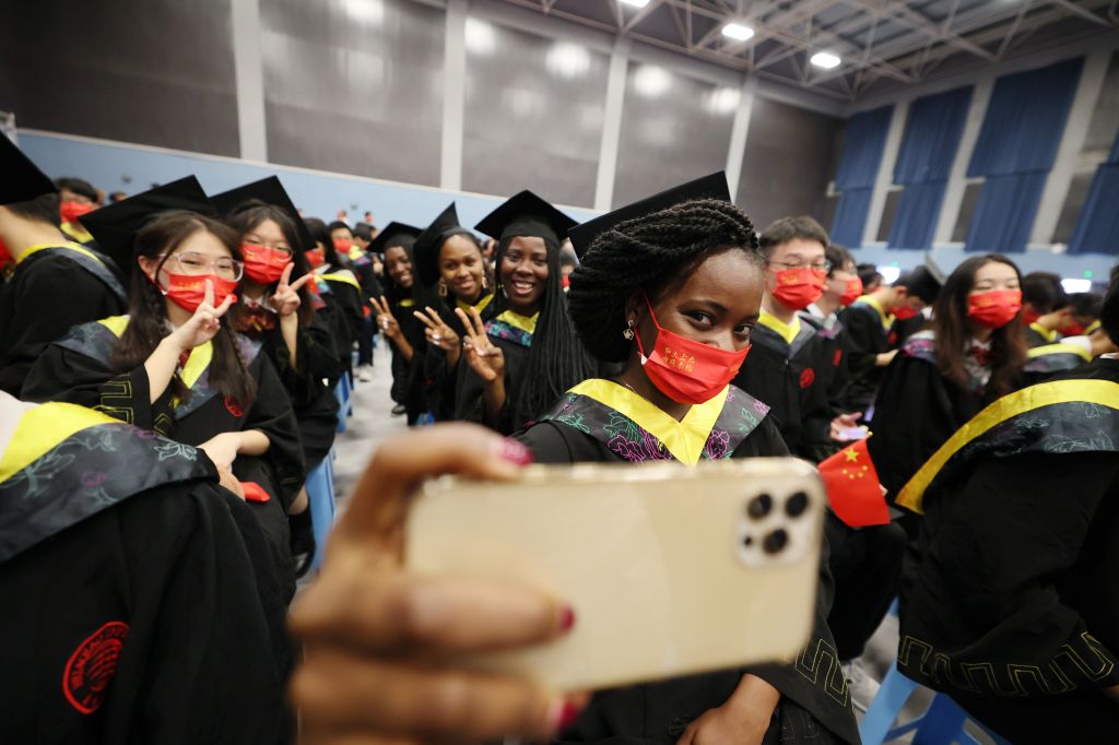 受疫情影响,身处境外的同学未能亲临毕业典礼现场。来自菲律宾、泰国、马来西亚、安哥拉、柬埔寨等国家以及中国港澳台地区的16位毕业生代表特别发来视频,表达未能返校的遗憾以及对母校、老师的感谢之情。