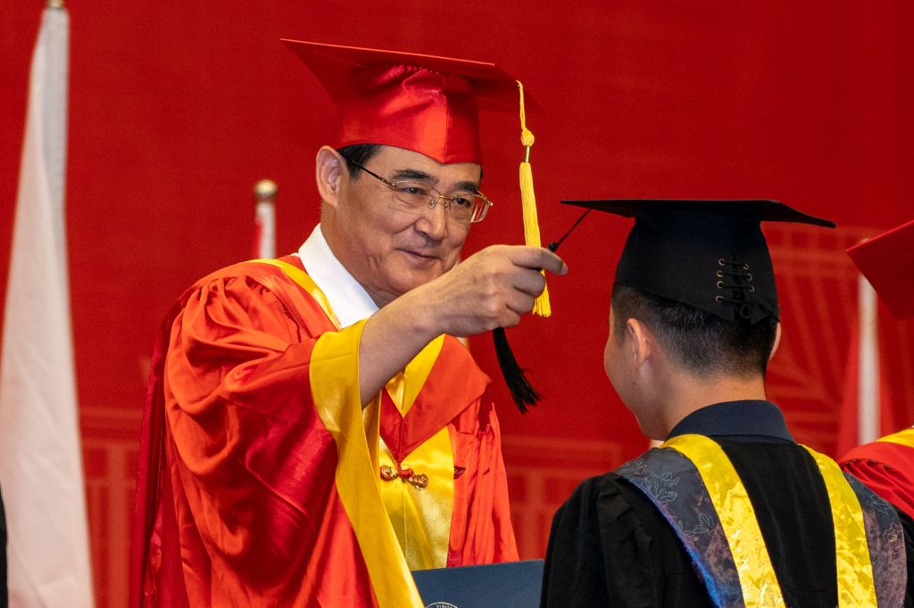 主礼嘉宾为毕业生拨穗并颁发学位证书
