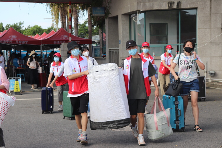 在这群志愿者中,还有一道特别“高大”的风景线——来自体育学院的十余名大一新生,同时也是学校学生男子篮球队的新球员。他们也加入校门迎新引导、搬运行李的志愿服务行列中,队员陈鹤鸣就是其中之一。他表示,因为训练需要,球员们早早就来到学校,完成了疫情防控相关要求,“大家参加志愿服务,也是以另一种方式为校园贡献出一份自己的力量”。
