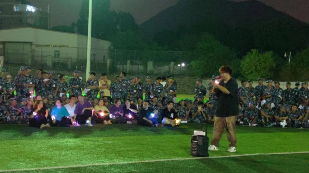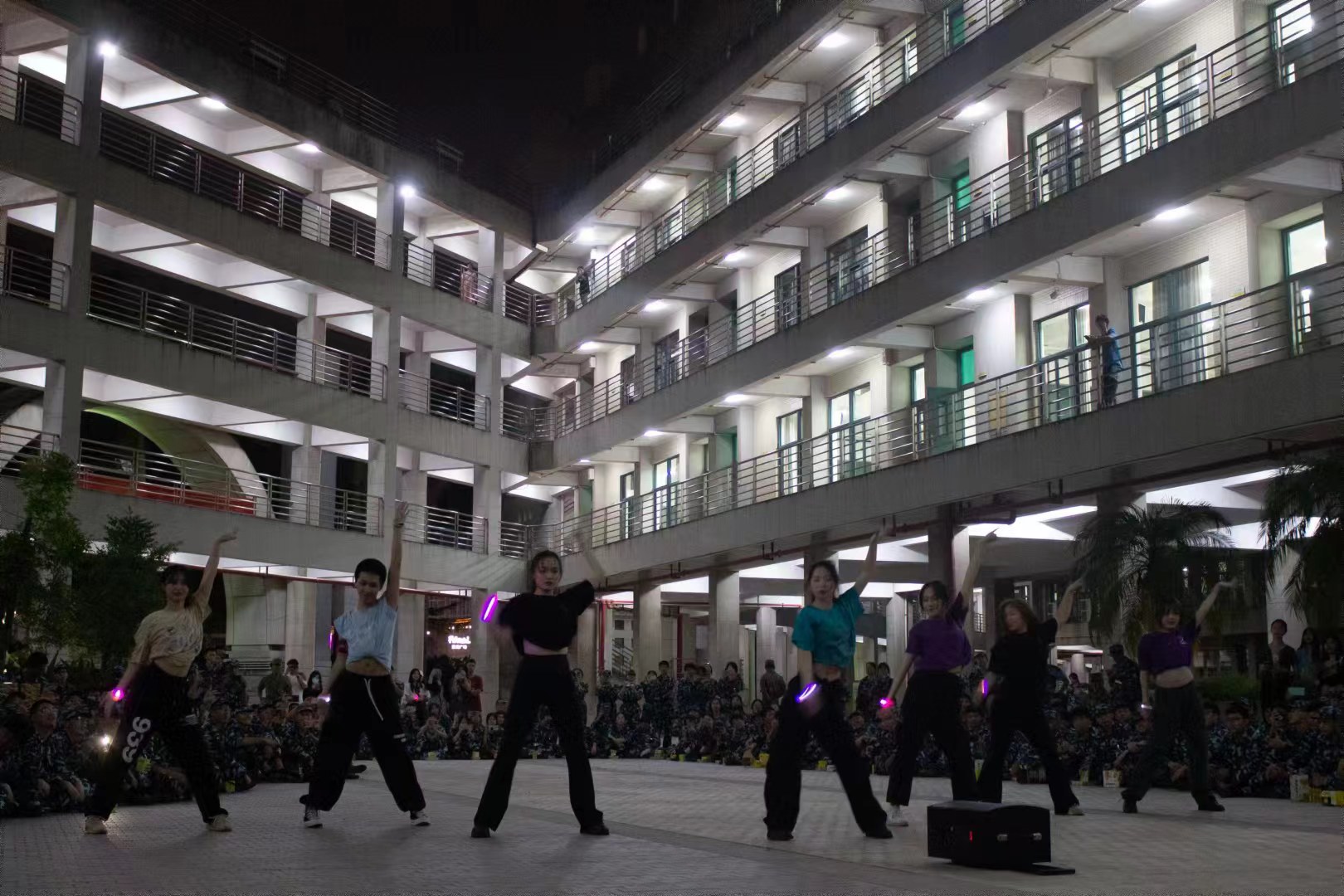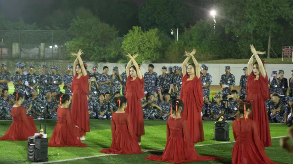 为喜迎党的二十大胜利召开,共庆中秋佳节,9月10日晚,“喜迎二十大·筑梦向未来”主题荧光快闪活动在两校区田径场和2022级新生各连队军训场地举行。