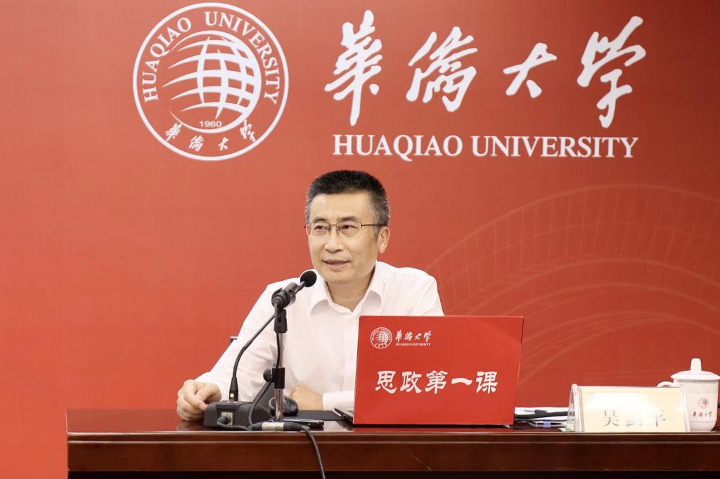 吴剑平还结合习近平总书记对青年学生的殷切希望,从“我想做什么”“我能做什么”“社会需要我做什么”三个角度寄语华大学子认真学习侨校历史,深刻体悟学校发展历程,自觉担当“为侨服务,传播中华文化”的崇高使命。一是要发扬爱国奉献、勇于担当、开放包容、追求卓越的华大精神,不忘本来,不愧天地,不负时代;二是要自尊、自信、自律、自强,做中华文化的坚定信仰者、模范实践者、积极发展者;三是要坚持德智体美劳全面发展,努力成为具有创新精神、实践能力、国际视野与社会责任感的高素质高层次人才。