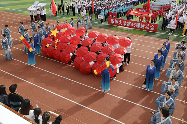 开幕式上,泉州校区各学院及机关、后勤、产业工会代表队的15个方阵陆续登场。他们口号响亮,尽显气宇轩昂;他们步伐整齐,尽展斗志昂扬。师生们身着各具特色的服装,队列步伐整齐划一,方阵表演百花齐放,展现华大人蓬勃、奋发、积极向上的精神风貌。
