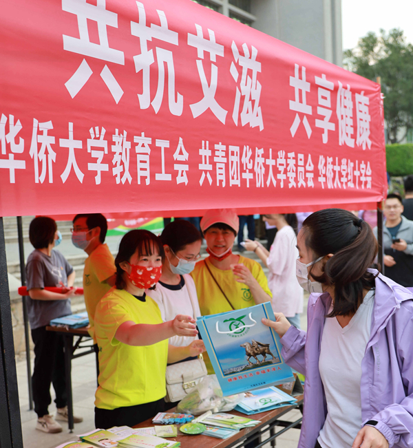 作为beat365教职工参与范围最广的群众性体育健身活动,今年环校健步走继续采用线上签到方式,方便各单位工会现场打卡。此外,为响应国家卫生健康委员会号召,本次活动以2022年世界艾滋病日“共抗艾滋 共享健康”为主题,现场并举行了防艾知识宣传与知识问答。