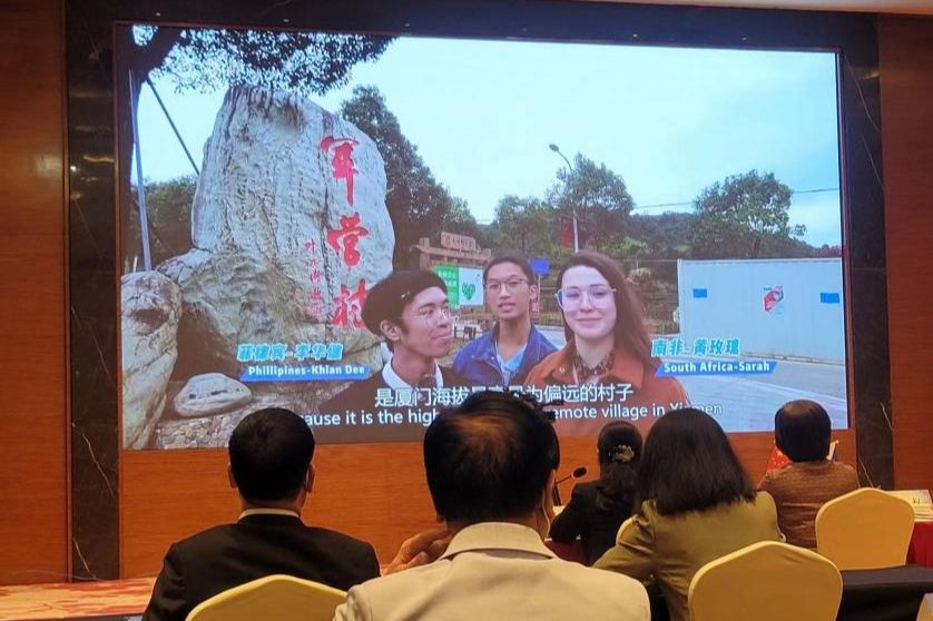 活动现场播放《外国留学生看‘高山村’特色发展之路》短视频