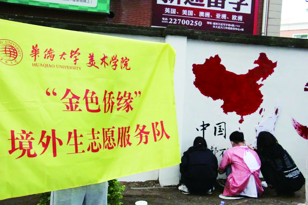 美术学院努力厚植港澳台侨学生的家国情怀,以社会实践活动引导学生服务中国乡村,组织“金色侨缘”境外生实践团和“红色美丽乡村”墙绘实践团分别赴宁夏回族自治区银川市和福建省漳州市、龙岩市、三明市、莆田市、宁德市及泉州市等地开展墙绘活动,绘制文化宣传墙体、拍摄宣传视频、设计文创产品,用手中的画笔使每面墙能说话。一幅幅精彩墙绘作为特殊载体,在突出别具一格的风土人情的同时,为高校助力“乡村振兴”绘出美丽画卷。