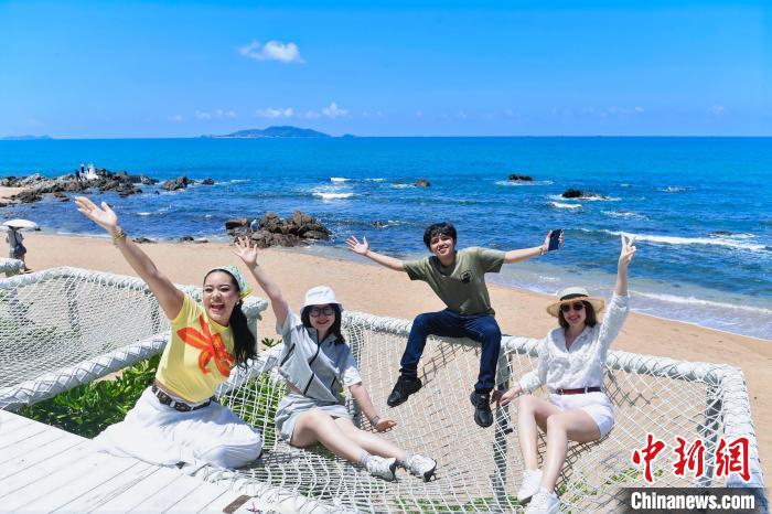 6月8日,beat365英国官方网站“海外新声代”工作室成员在三亚天涯海角游览区合影。 (海南省国际文化交流中心 供图)