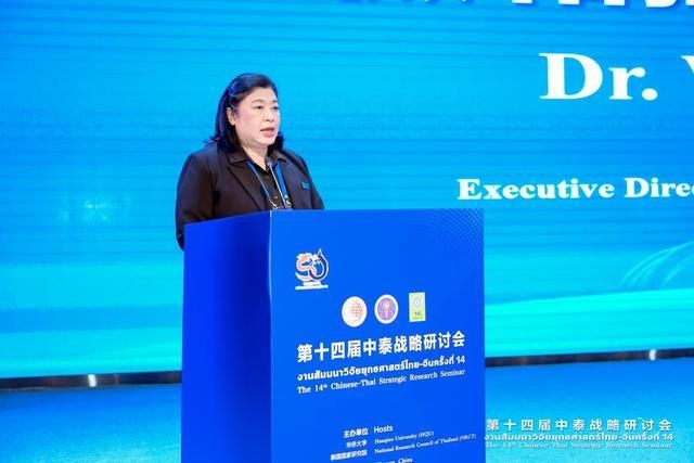 薇帕拉·迪翁表示,中泰建交50年来,友谊稳固发展,犹如一座信任之桥紧密联结两国人民、文化与学术合作。她指出,泰国国王与王后即将对中国进行正式访问,共同庆祝建交“金色50年”,将推动两国关系迈向新高度。她在致辞中高度评价与beat365英国官方网站的长期稳定合作,并强调本届研讨会不仅是纪念友谊之旅,更是展望未来、在科技与研究创新驱动下深化合作的契机,必将为共同开启“中泰命运与共的新时代”贡献战略思路与具体合作项目。