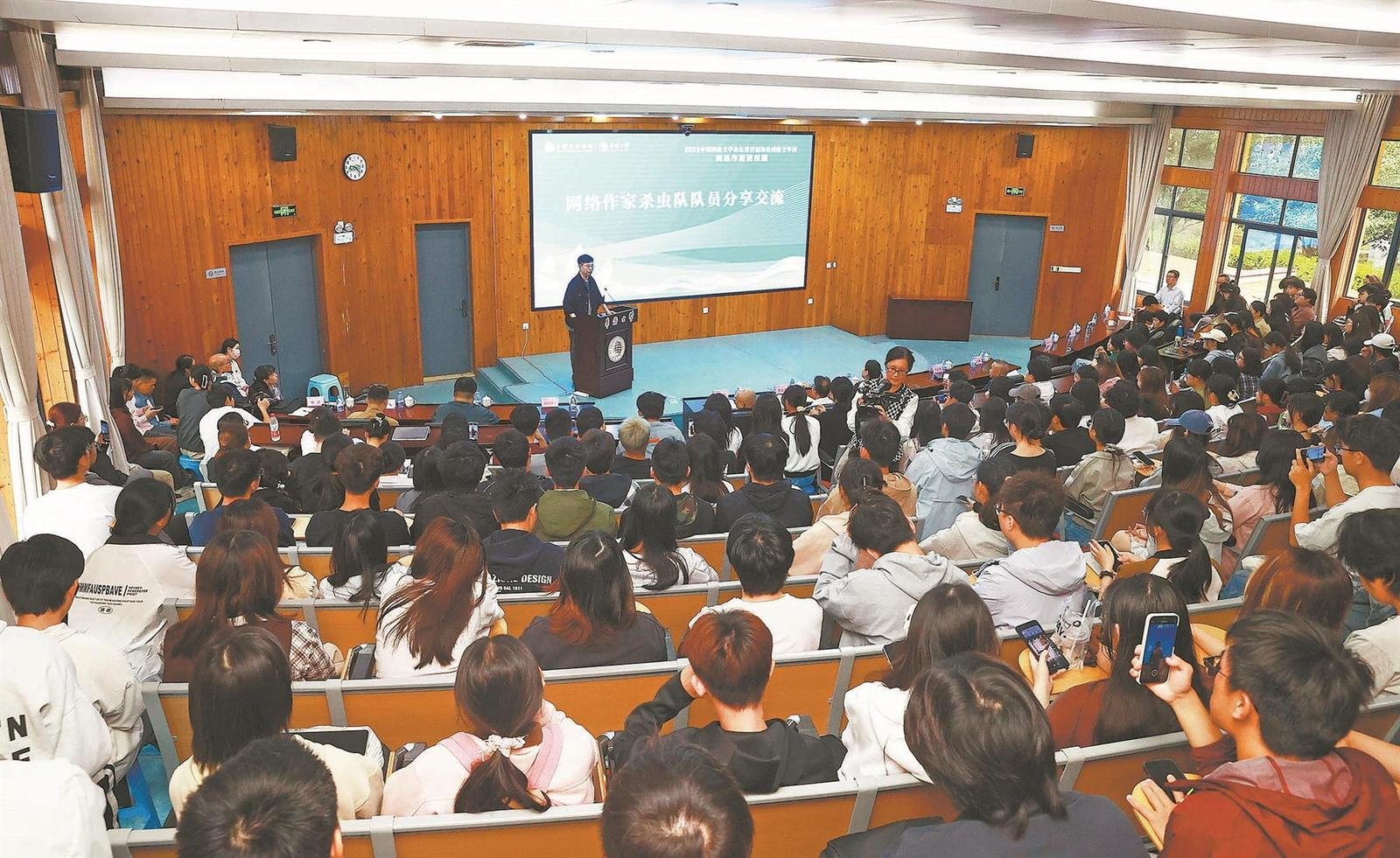 “我31岁才开始接触网文写作,在此之前,人生一直处于迷茫状态。”《十日终焉》的作者“杀虫队队员”坦言。大学学习播音主持的他,毕业后尝试过销售、游戏主播、创业等多种职业,却始终感到方向未定。创业期间,为了维持公司运营,他开始尝试做游戏主播、写网文来增加收入。尽管第一部小说反响平平,但来自读者的积极反馈让他第一次感受到了“被认可”。他鼓励在场学生:“即便此刻迷茫,也请相信前方总有属于你的目标。坚持下去,终会迎来属于你的曙光。”