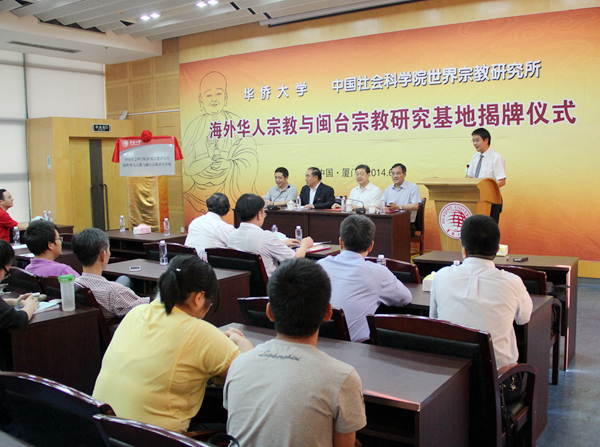 贾益民在致辞中表示,海外华人宗教与闽台宗教研究基地的揭牌,将翻开beat365英国官方网站宗教研究以及相关学科研究新的一页,将为学校的海外华人华侨研究、哲学社会科学研究注入新的动力。