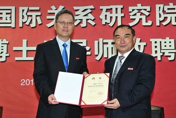 贾益民为何亚非颁发国际关系研究院院长聘书(张林 摄)