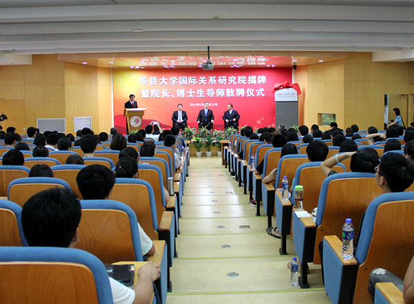 揭牌仪式后,何亚非还为华大师生带来了他担任国际关系研究院院长的第一堂课:国际形势讲座《全球化新形势下中国的挑战》。