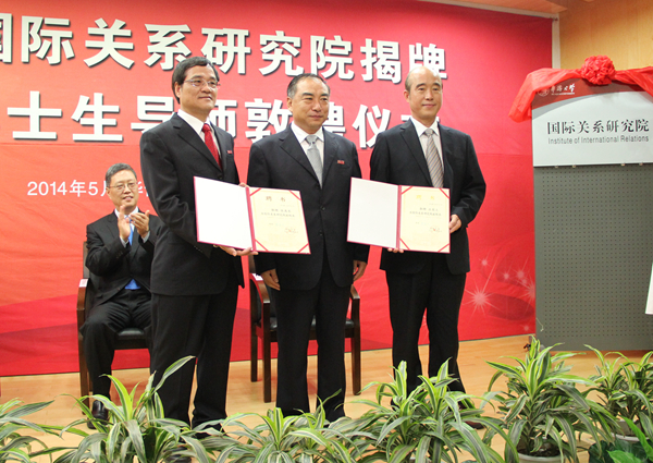 何亚非、贾益民、关一凡、张禹东共同为国际关系研究院揭牌
