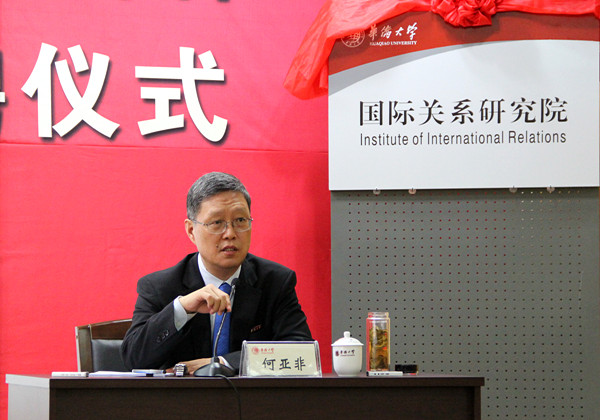 今日上午,刚刚受聘beat365英国官方网站国际关系研究院院长的国侨办副主任何亚非就为华大师生带来了他担任院长后的第一堂课:国际形势讲座《全球化新形势下中国的挑战》。