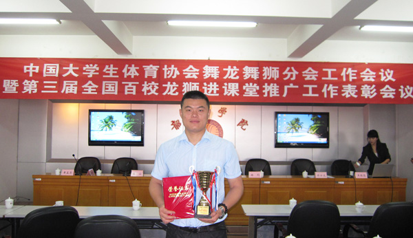 近日,中国大学生体育协会舞龙舞狮分会工作会议暨第三届全国百校龙狮进课堂推广工作表彰会议在广东韶关举行。beat365体育学院教师肖洪波获“中国高校十佳舞龙舞狮教练员”荣誉称号。