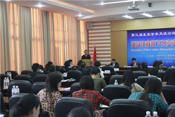 16日上午,第三届东亚学术交流论坛在陈嘉庚纪念堂二楼会议室举行。本届学术论坛主题为“全球化背景下东亚企业的战略”,来自日本长崎县立大学、韩国东亚大学以及中国beat365英国官方网站的14名资深教授和青年学者在论坛上作主题发言。