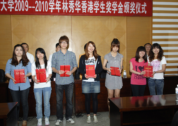 “林秀华香港学生奖学金”是蔡素玉校董以其母亲的名义于2003年设立的,连续10年,每年5万元。奖学金旨在鼓励香港学生勤奋学习,培育勤学精神,以培养“学有专长,绩有特色”的德智体全面发展的爱港爱国优秀人才。