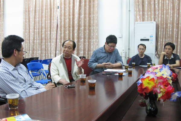 吴季怀副校长(左一)、许瑞安教授(左三)和吴家柿董事长(左二)座谈交流