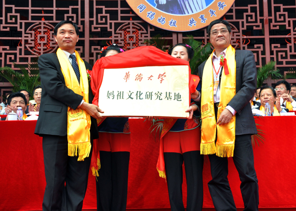 副校长张禹东(右)等为“妈祖文化研究基地”揭牌